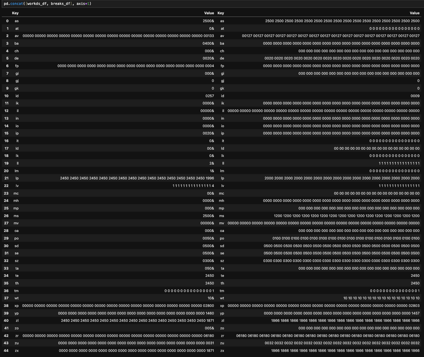 i then tried to “break” the raw command by replacing a command at the time generated from PLR into the VENUS generated version. i found that specifically its the (at, il, in) commands that cause the out of range error. In VENUS these three parameters are written as a single argument followed by an ampersand, while in PLR it is the full list of the 16 arguments. Why this causes an issue is still a mystery to me, giving the full list of 16 aruguments work just fine for all other commands.