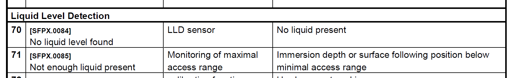 “No liquid level found (possibly because no or too little liquid was present to trigger cLLD)”,