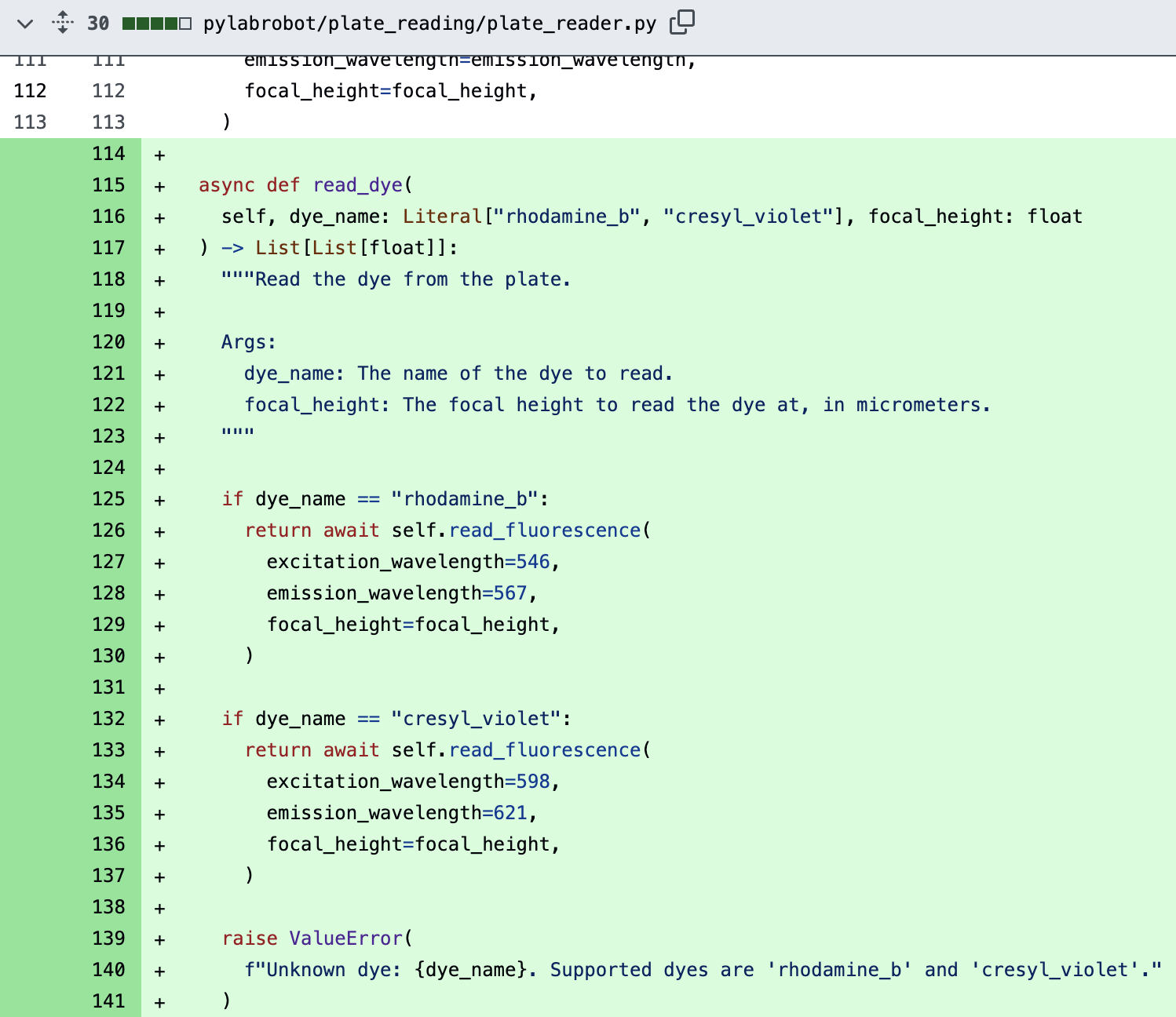 → I’d therefore recommend to rename plate_reader.read_fluorophore() instead.