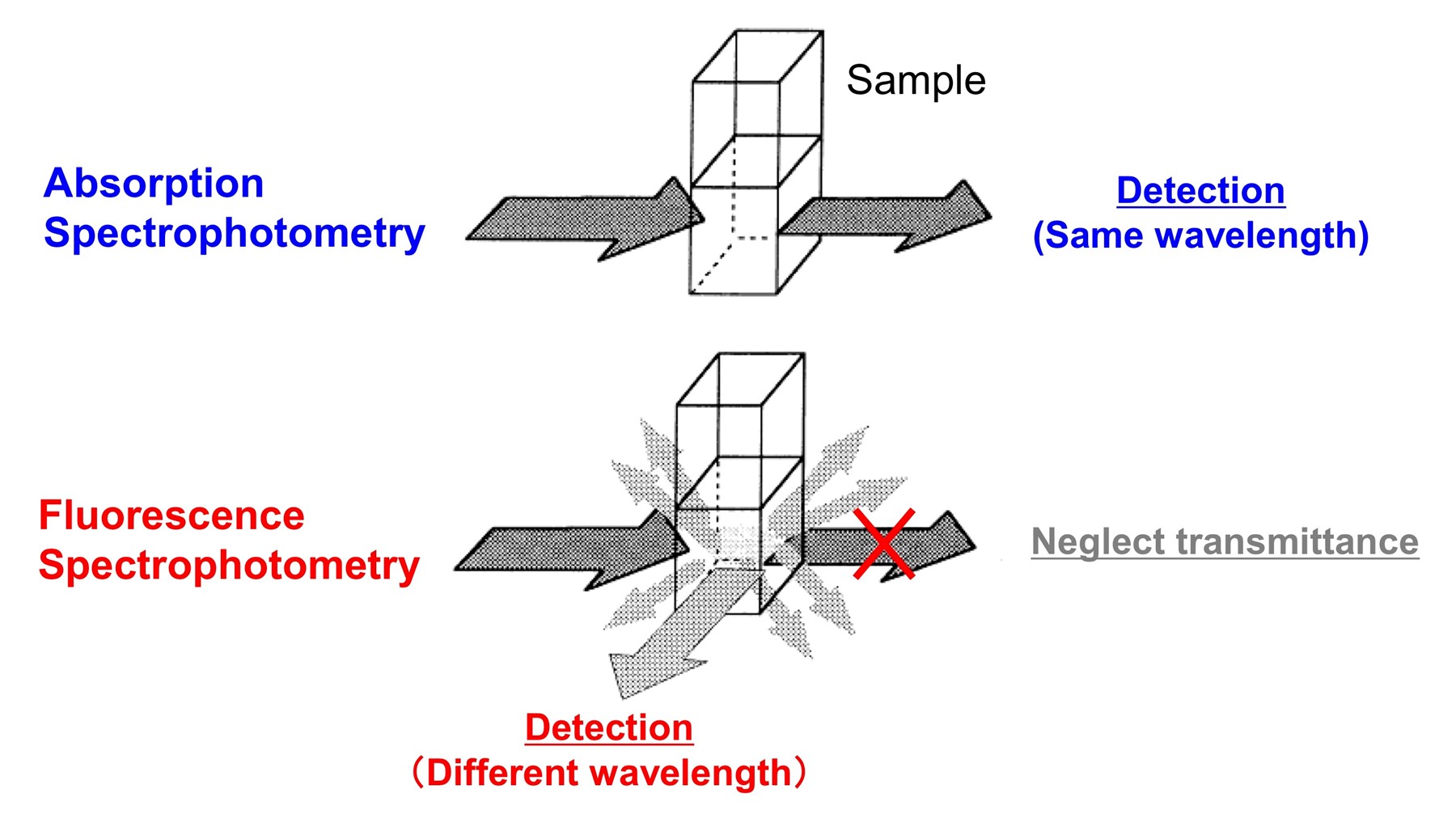 Spectrophotometry usually means “absorbance” measurements (though technically it can be fluorescence too but I’ve never met someone talking about fluorescence as spectrophotometry).